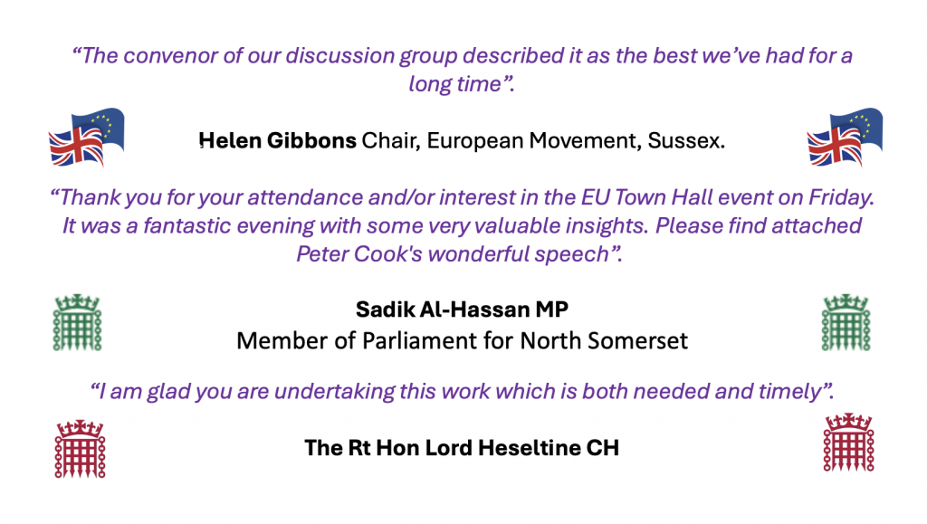 “The convenor of our discussion group described it as the best we’ve had for a long time”. Helen Gibbons, Chair, European Movement, Sussex.